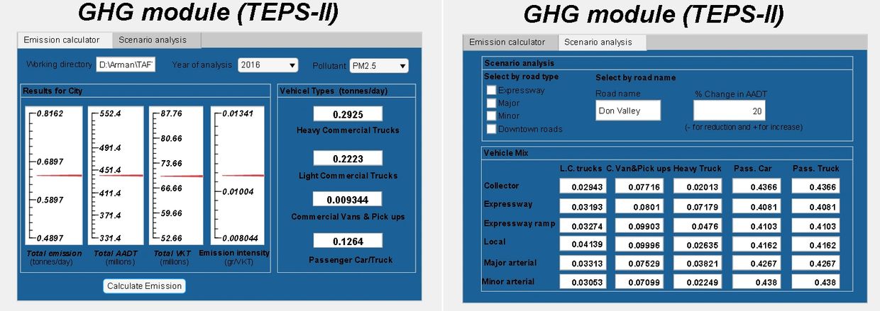 TEPs-II trains a Neural Network based learning algorithm to mimic the output of a user equilibrium traffic assignment model and to reproduce a relationship between vehicle speed and AADT. The trained model is then used to predict vehicle speed from TEPS-I. Road emissions are estimated based on average speeds, predicted volumes, and average-speed emission factors (EFs).